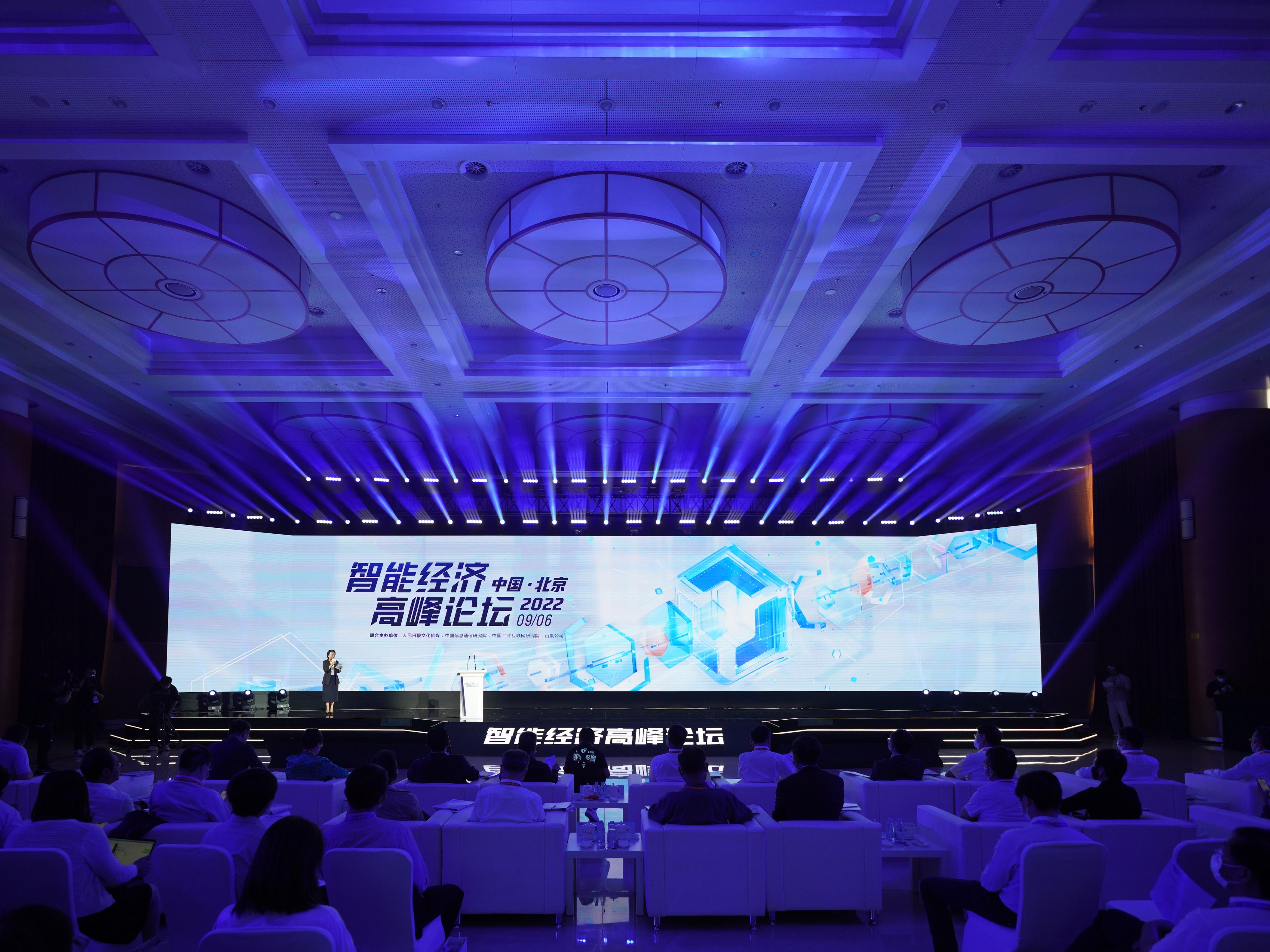 由人民日报文化传媒有限公司、中国信息通信研究院、中国工业互联网研究院、百度公司联合主办的2022智能经济高峰论坛9月6日在北京举行,本次论坛的主题为“智能经济助推实体经济高质量发展”。